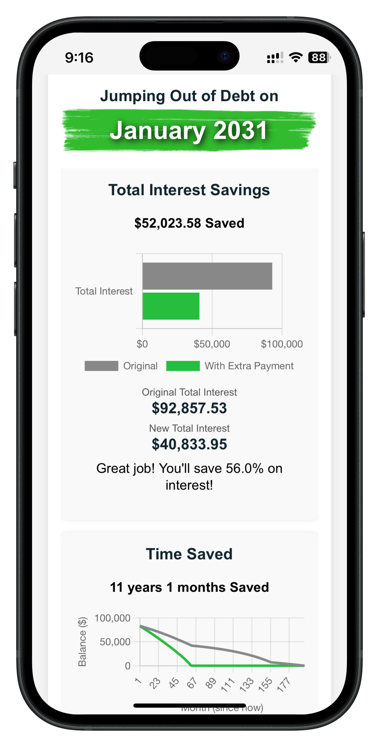 - Edit and Update Instantly: Adjust balances, interest rates, or payments and see updated results immediately — no need to start over.